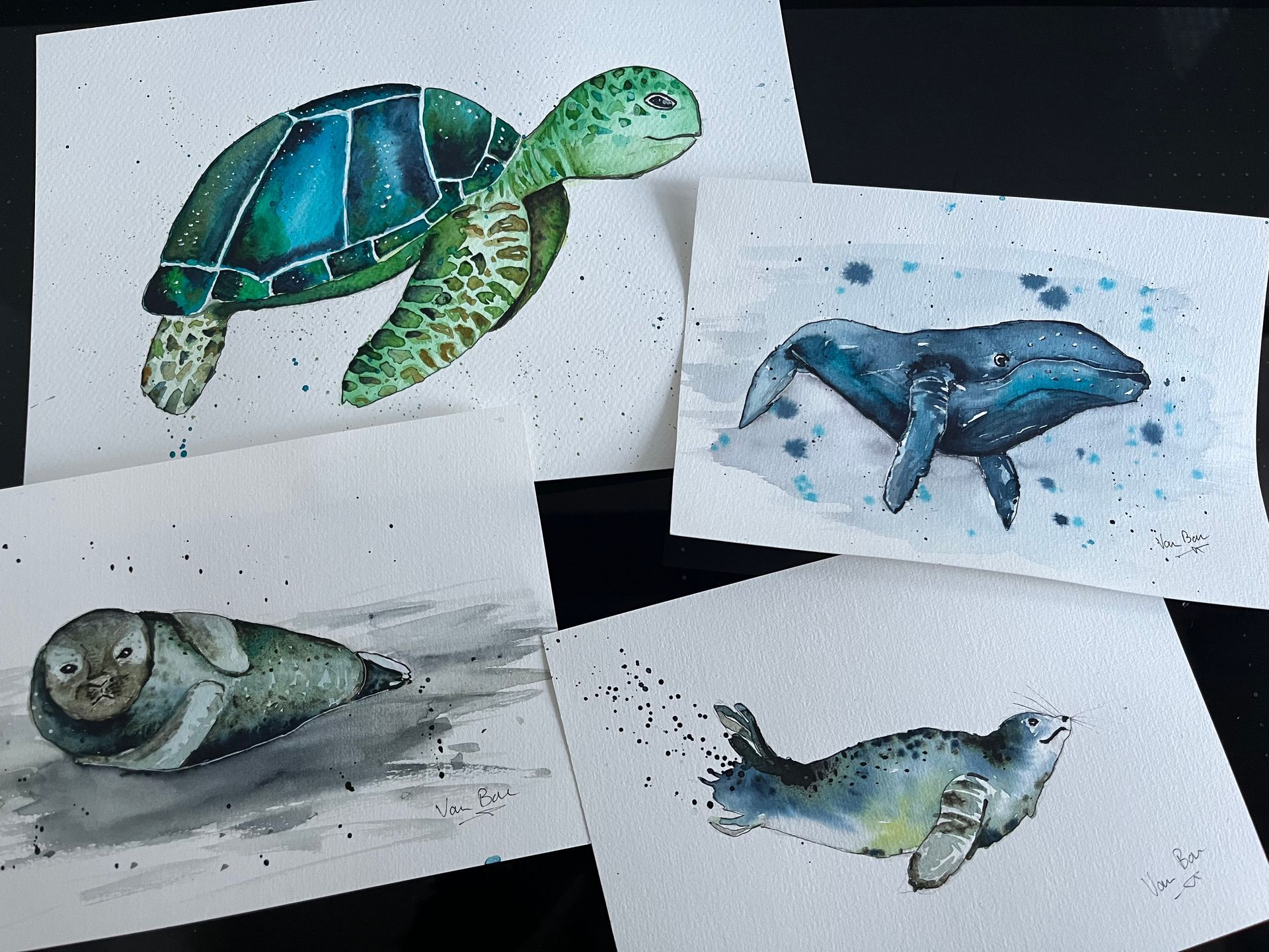 Voor de kinderkamer van mijn zoontje wilden we graag schilderijtjes aan de muur. Vanbar heeft vrolijke waterdieren voor ons geschilderd, waar mijn zoontje elke dag met veel plezier naar kijkt!